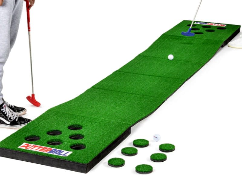 - Compact & Portable: The game easily folds out to a convenient 12 ft, making it perfect for indoor and outdoor use. Whether you're heading to a friend's house or a weekend getaway, Putterball is your go-to entertainment.